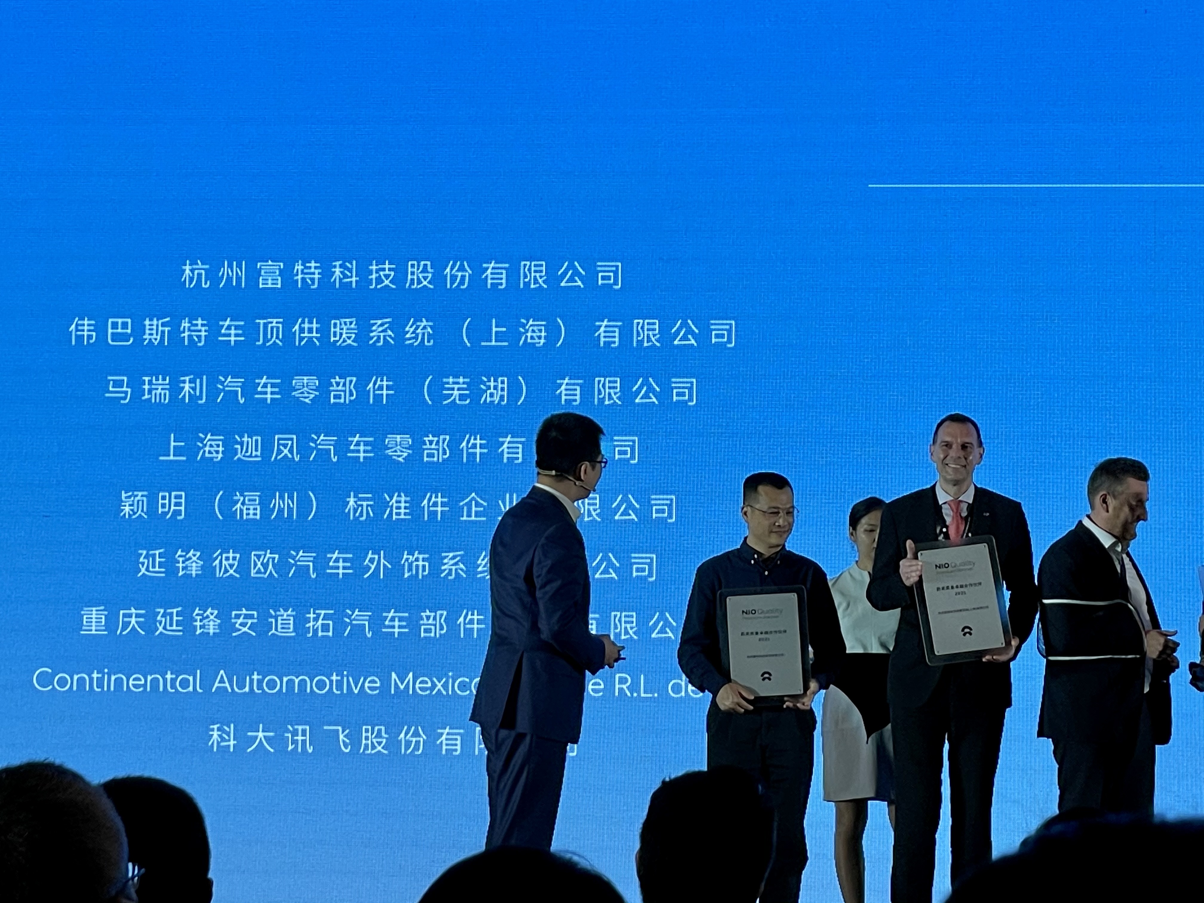 大会现场,蔚来汽车执行副总裁沈峰先生,亲自为富特科技颁发了NIO Quality Premium Partner(NQPP蔚来质量卓越合作伙伴奖项),表达了对富特科技产品的巨大信任和肯定。